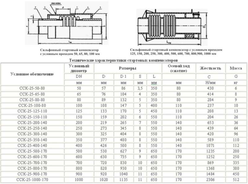 Стартовые сильфонные компенсаторы ССК